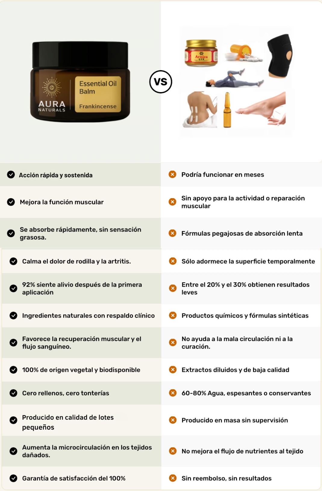 He probado muchos bálsamos, pero este destaca. Llevo 7 años con problemas de rodillas y esta crema es la única solución que realmente alivia tanto dolor. Incluso empecé a caminar a diario, algo impensable hace un año...